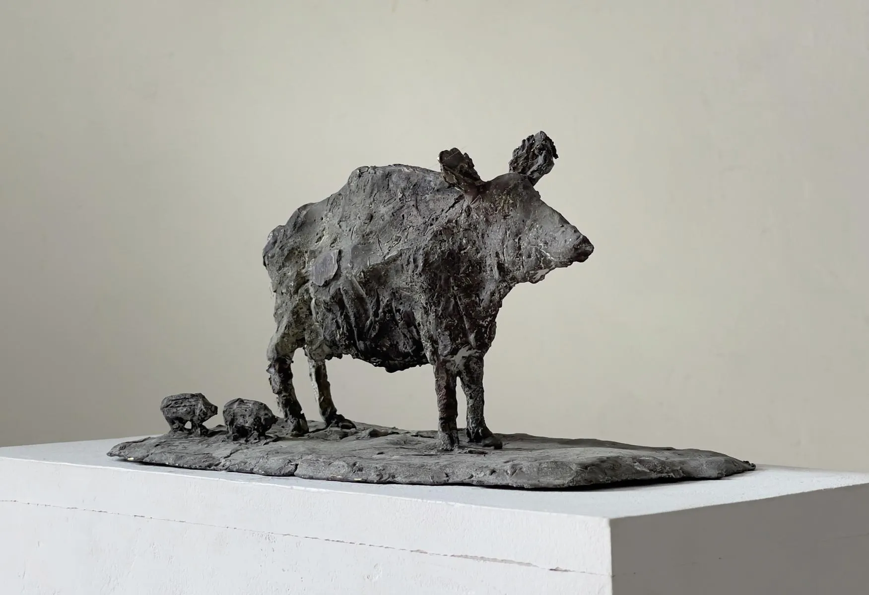 Bache mit FrischlingenBronze, 24x13x12cm